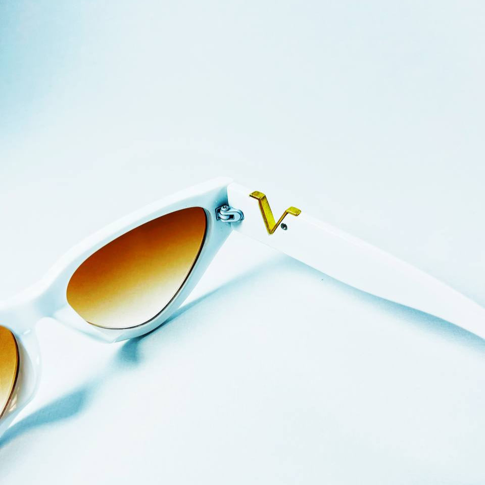 GLAMURÉ BLANCHÉ irradia frescura y sofisticación con su marco blanco brillante, lentes dorados y detalles metálicos que elevan su carácter. Inspiradas en el lujo veraniego y el diseño gráfico contemporáneo, estas gafas proyectan seguridad, estilo y una presencia que no pasa desapercibida. Pensadas para mujeres que se expresan con luz propia y dominan cada entorno con elegancia.