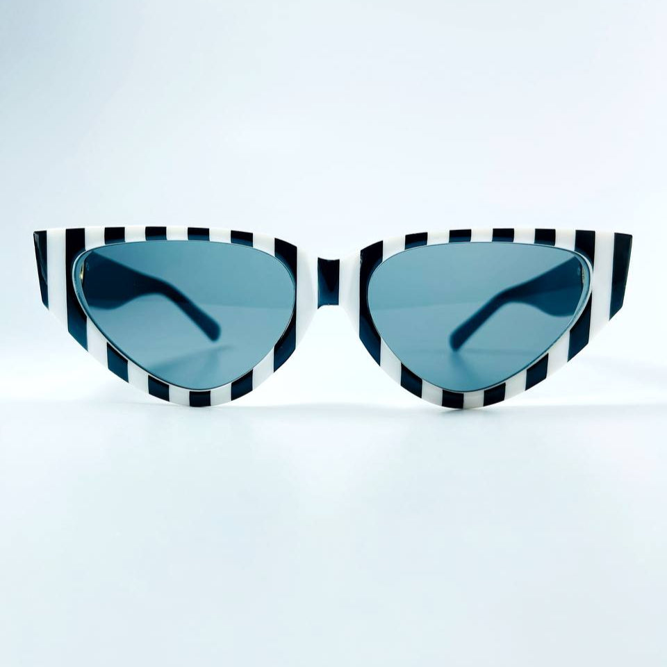 GLAMURÉ STIRPE redefine el glamour urbano con un diseño audaz en blanco y negro, inspirado en patrones clásicos reinterpretados con actitud moderna. Su frontal a rayas y detalles dorados evocan sofisticación editorial, mientras que las lentes oscuras proyectan seguridad y misterio. Pensadas para mujeres que expresan su linaje estético con fuerza y elegancia.